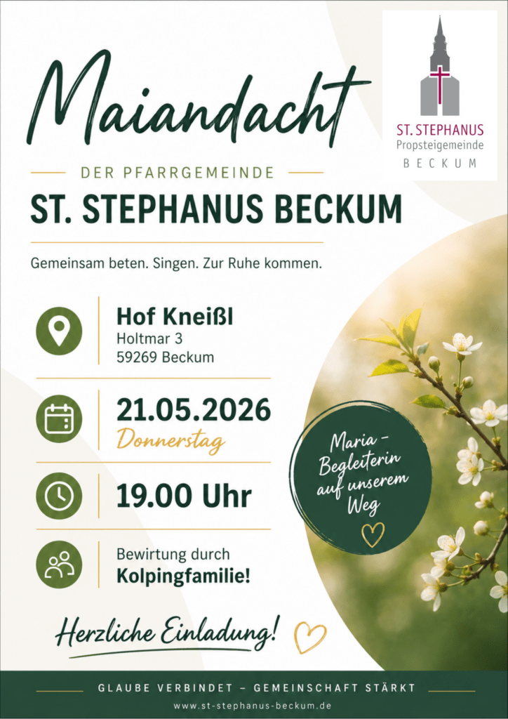 (20.01.2026) Am vergangenen Samstag war gleich zweimal Firmung: Um 15:00 Uhr hat Weihbischof Dr. Stefan Zekorn das Sakrament in der St. Stephanus Kirche Beckum gespendet und um 17:30 Uhr in der St. Joseph Kirche Neubeckum. …
