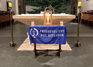 (20.12.2025) Auch in der Pfarrgemeinde St. Stephanus traf gestern das Friedenslicht aus Bethlehem ein. In einem sehr gut besuchten und feierlichen Gottesdienst überbrachten die Pfadfinder der Gemeinde und der Stadt Beckum das Friedenslicht. Pastor Siju freute sich darüber, dass die Beckumer Pfadfinder die Aktion durchführen und wünschte Ihnen “ Ein Funke Mut“ für alles was …