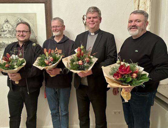 Bild: v.l.n.r. Olaf Funke (Wadersloh), Bernd Kruse (Beckum), Pfarrer Martin Klüsener (Wadersloh), Markus Wibbeke (Beckum)
